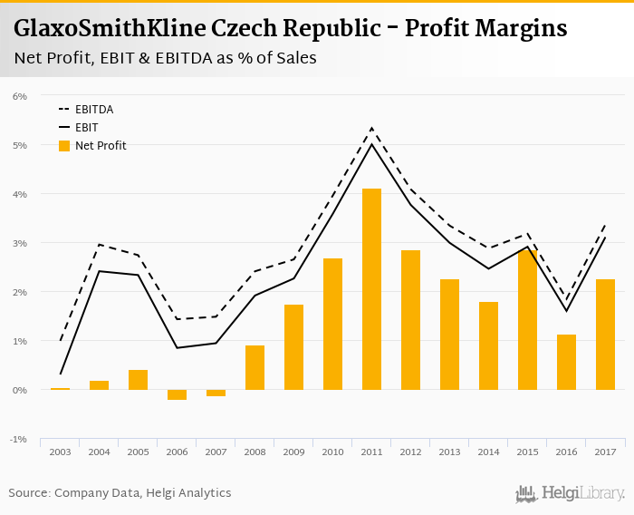 GlaxoSmithKline Czech Republic made a net profit of CZK 65.4 mil with revenues of CZK 2,897 mil in 2017, up by 72% and down by 14.6%, respectively, compared to the previous year.