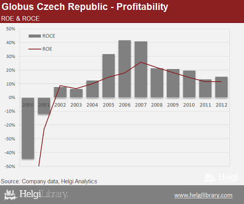 Since 2000, the Company's sales have more than doubled in the Czech Republic, to nearly CZK 23 bil in 2012. On the other hand, profitability remains low with a net margin of below 1% on average in the last three years