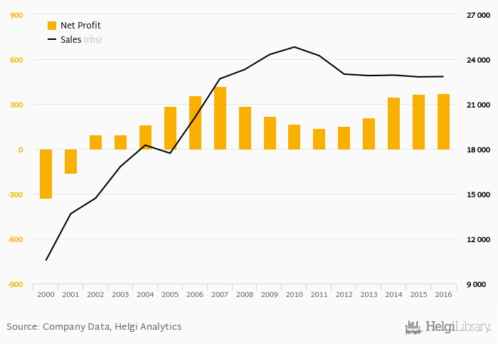 Sales have grown by 1.28% a year on average since 2006. They reached a high of CZK 24,811 mil in 2010 and a low of CZK 10,532 mil in 2000.