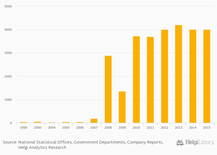 Gold (mine) production rose 0% to 4,000 kg in Nigeria in 2015, according to the National Statistical Office.