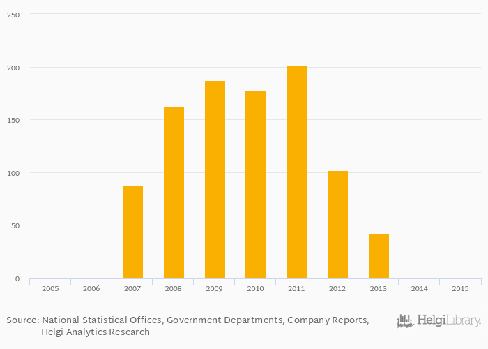 Historically, gold (mine) production in the United Kingdom reached an all time high of 202 kg in 2011 and an all time low of 0 kg in 2005.