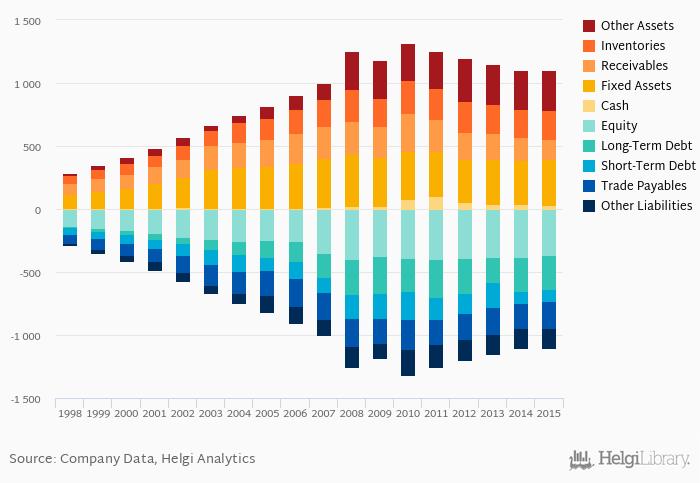 Net debt against equity is down 0.118 pp from five years ago (1.02). The ratio against EBITDA increased from 3.69x seen in 2010 to 4.13x.