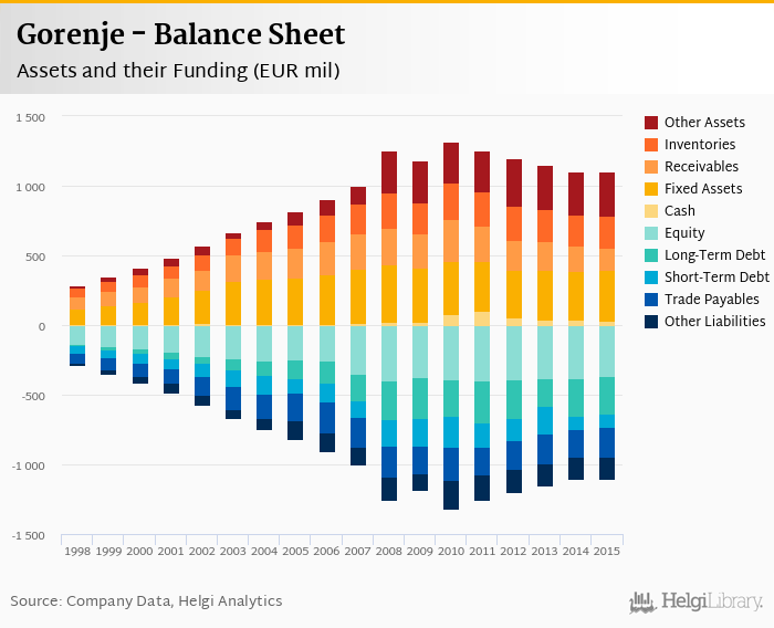 Gorenje's total assets reached EUR 1,101 mil at the end of 2015, down 0.103% compared to the previous year.