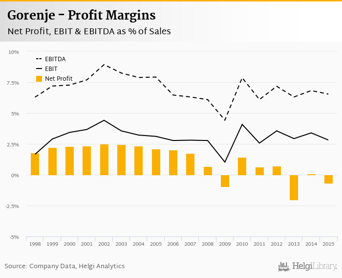 Gorenje made a net profit of EUR -8.20 mil with revenues of EUR 1,225 mil in 2015, down by 905% and down by 2.29%, respectively, compared to the previous year.