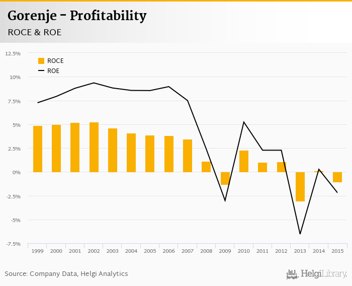 Gorenje made a net profit of EUR -8.20 mil in 2015, down 905% compared to the previous year. Historically, between 1998 and 2015, the company's net profit reached a high of EUR 22.7 mil in 2007 and a low of EUR -25.2 mil in 2013.