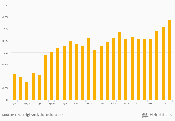 Gross natural gas production as a share of worldwide production rose 8.88% to 0.336% in Angola in 2015, according to EIA.
