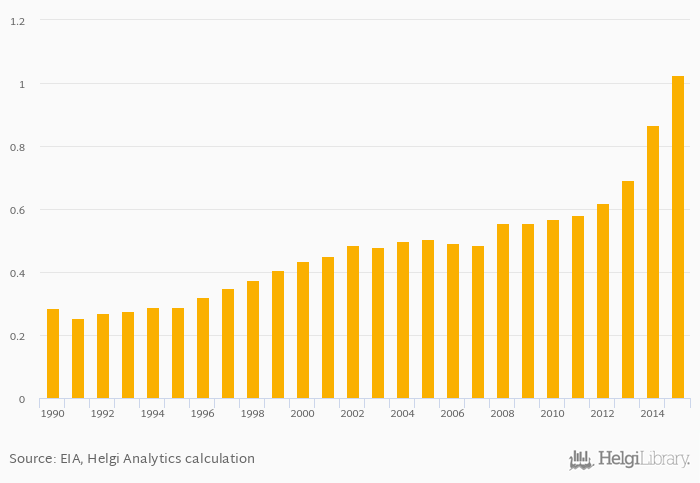 Historically, gross natural gas production as a share of worldwide production in Brazil reached an all time high of 1.03% in 2015 and an all time low of 0.255% in 1991. When compared to Brazil's main peers, gross natural gas production as a share of worldwide production in Bolivia amounted to 0.712%, 0.592% in Peru and 2.47% in Venezuela in 2015.