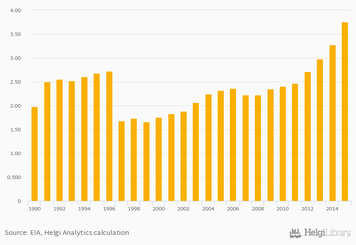 Gross natural gas production as a share of worldwide production rose 14.7% to 3.76% in Saudi Arabia in 2015, according to EIA.