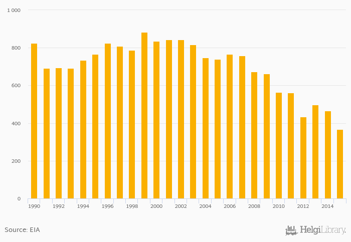 Gross natural gas production fell 21.0% to 367 bil cb ft in Germany in 2015, according to EIA.
