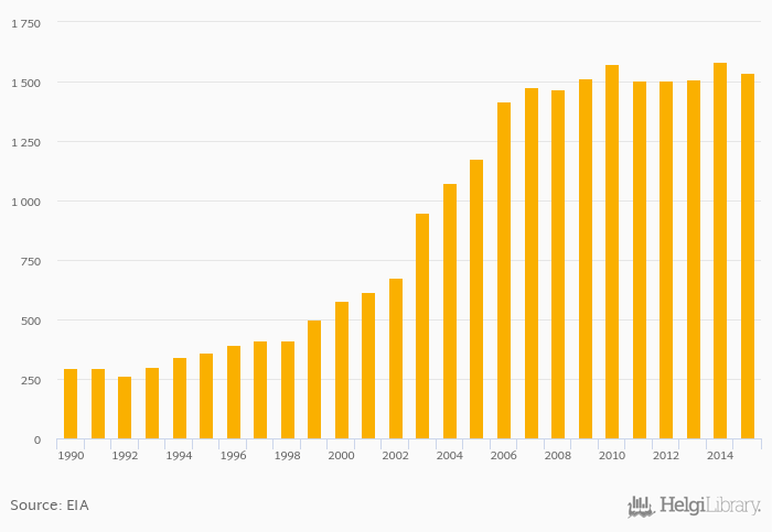 Gross natural gas production fell 2.98% to 1,538 bil cb ft in Trinidad and Tobago in 2015, according to EIA.