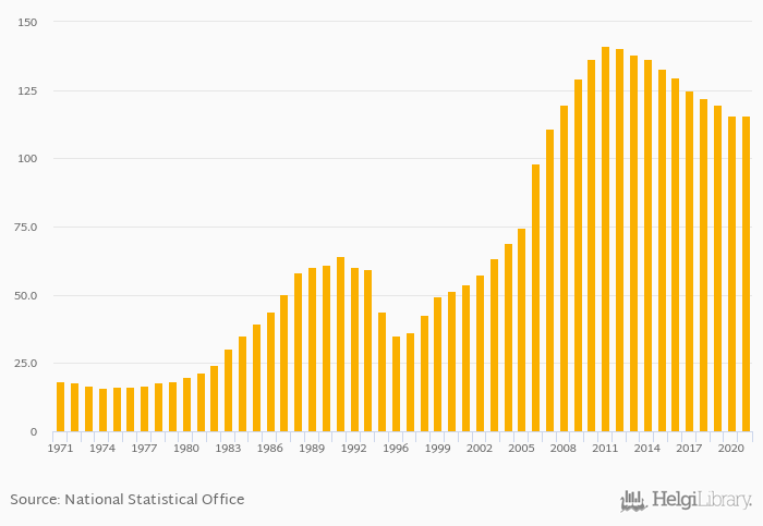 Historically, gross school enrollment of females in primary education in Burundi reached an all time high of 141% in 2011 and an all time low of 15.8% in 1974.