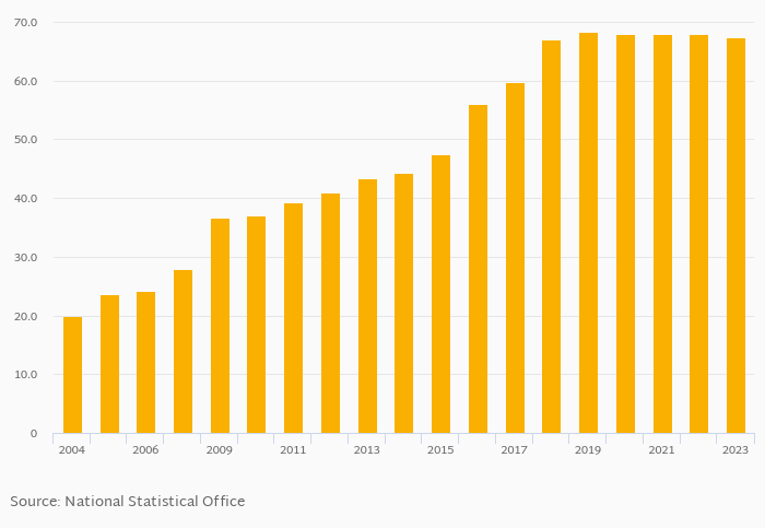 | Malta | % | 62.3% | 67.3% | 70.1% | 75.7% | 90.2% | ... | |||||||||||||||