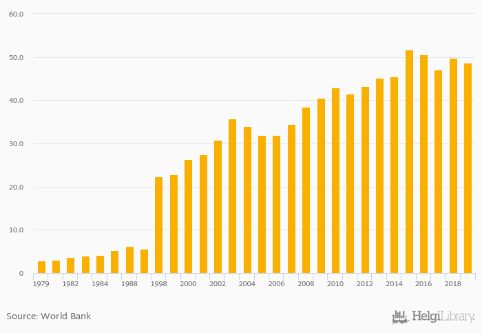 | Indonesia | % | ... | 38.9% | 39.5% | 40.9% | 44.0% | 46.6% | ... | ||||||||||||||