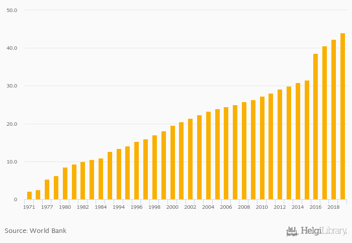| China | % | 59.7% | 63.4% | 68.2% | 73.3% | 77.7% | ||||||||||||||||