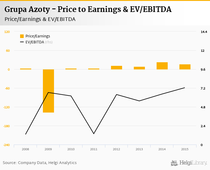 Grupa Azoty stock traded at PLN 99.5 per share at the end 2015 translating into a market capitalization of USD 2,788 mil.