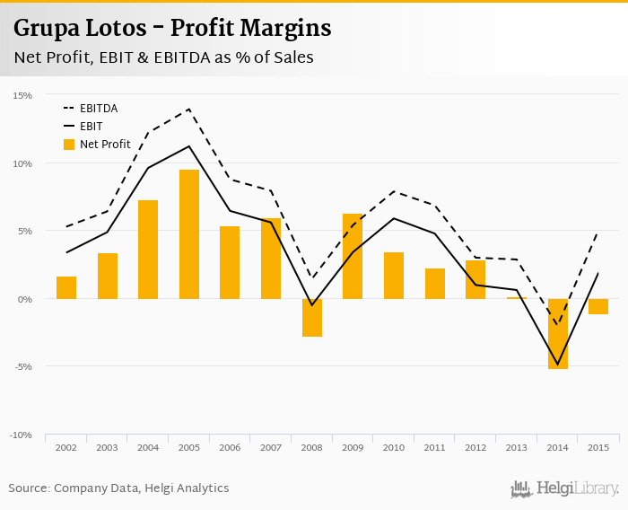 Grupa Lotos made a net profit of PLN -263 mil with revenues of PLN 22,709 mil in 2015, up by 82% and down by 20.3%, respectively, compared to the previous year.