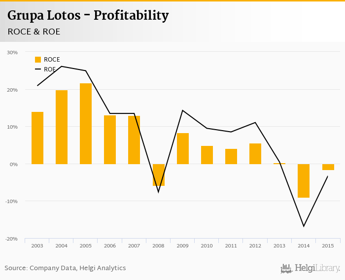 As far as Grupa Lotos's peers are concerned, PKN generated ROE of 12.7% and ROCE of 7.91% in 2015. MOL's profitability reached -12.8% and -8.11%, respectively. OMV Petrom operated with -2.57% and -1.79% returns in 2015.
