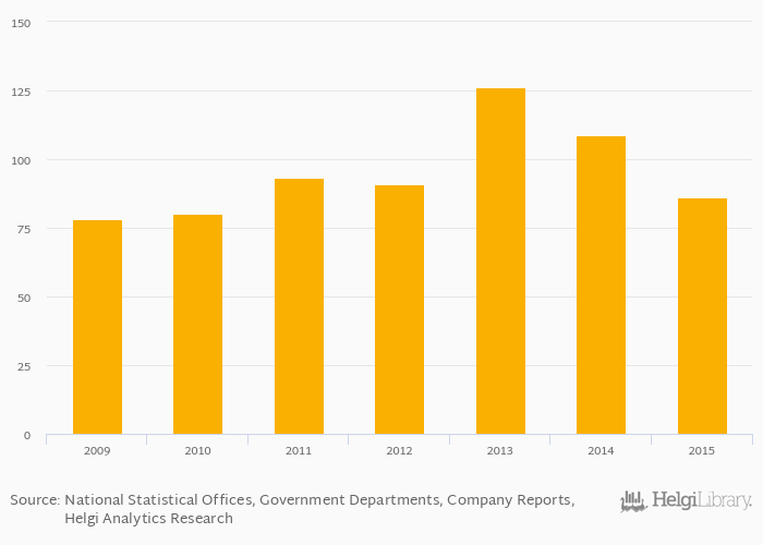 Gypsum and plaster production fell 20.8% to 86.2 kt in Albania in 2015, according to the National Statistical Office.