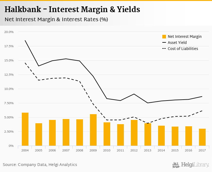 Halkbank's net interest margin amounted to 3.05% in 2017, down from 3.44% compared to the previous year.