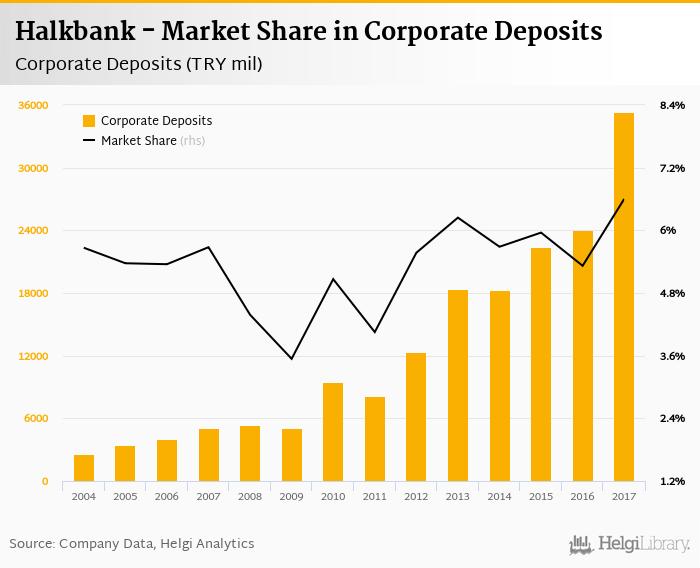Halkbank's corporate deposits reached TRY 35,336 mil in 2017, up 46.9% compared to the previous year.