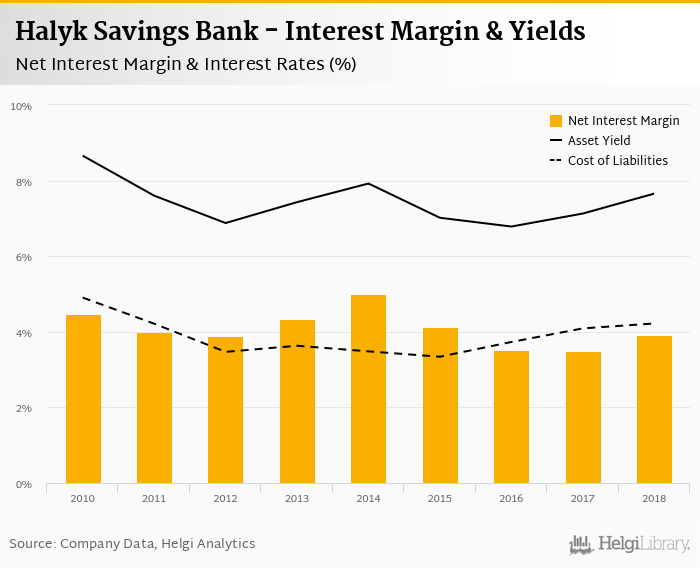 Halyk Savings Bank's net interest margin amounted to 3.91% in 2018, up from 3.50% compared to the previous year.
