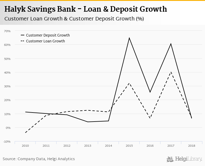 At the end of 2018, Halyk Savings Bank's loans accounted for 53.3% of total deposits and 38.9% of total assets.