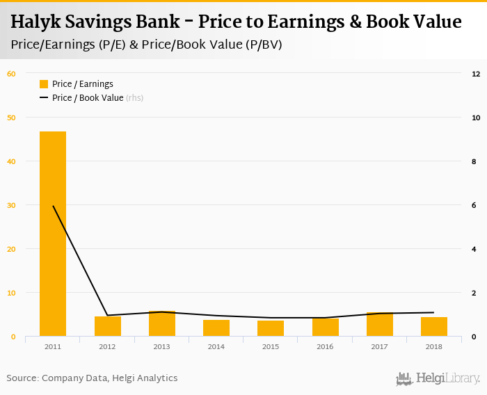 Halyk Savings Bank stock traded at RUB 102 per share at the end 2018 implying a market capitalization of USD 3,424 mil.