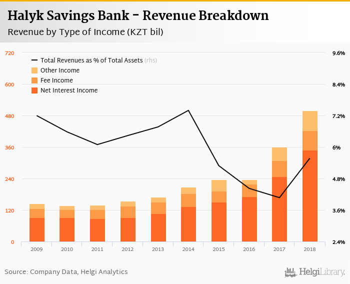 Halyk Savings Bank generated total banking revenues of KZT 499 bil in 2018, up 38.4% compared to the previous year.