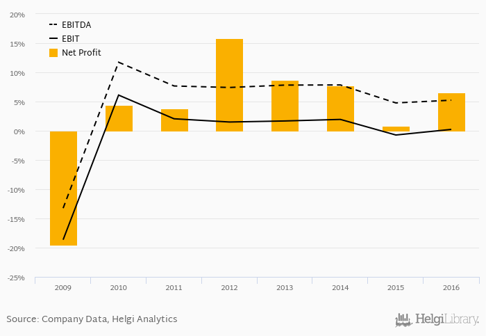 On the operating level, the EBITDA margin reached 5.23% and EBIT amounted to 0.237% of sales in 2016.