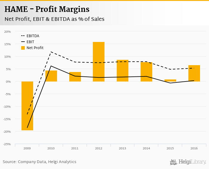 HAME made a net profit of CZK 252 mil with revenues of CZK 3,858 mil in 2016, up by 662% and up by 0.62%, respectively, compared to the previous year.