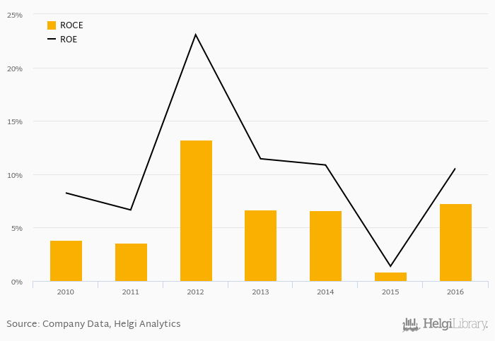 The result implies a return on equity of 10.6% and a return on invested capital of 7.29% in 2016. That is compared to an average of 11.5% and 6.95% over the last five years.