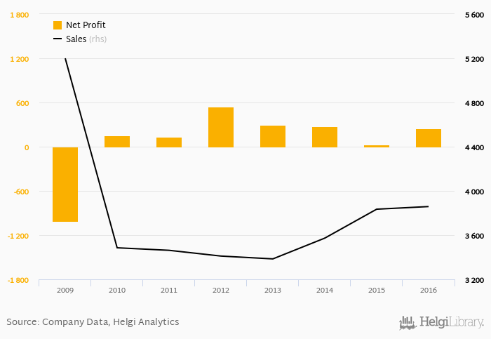 As far as HAME's peers are concerned, EMCO posted a net profit and sales of CZK 24.5 mil and CZK 930 mil in 2016, Madeta generated a net profit of CZK 367 mil (with sales of CZK 5,330 mil), and Kostelecke Uzeniny netted USD CZK 76.2 mil (sales of CZK 5,018 mil).