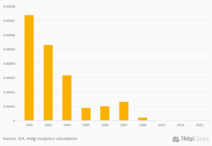 Historically, hard coal production as a share of worldwide production in Monaco reached an all time high of < 0.001% in 1992 and an all time low of 0% in 2014.