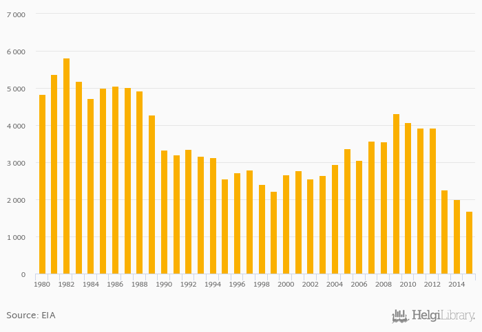 Historically, hard coal production in Turkey reached an all time high of 5,808 kt in 1982 and an all time low of 1,681 kt in 2015.