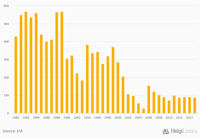 Historically, hard coal production in Argentina reached an all time high of 568 kt in 1982 and an all time low of 27.6 kt in 2005.