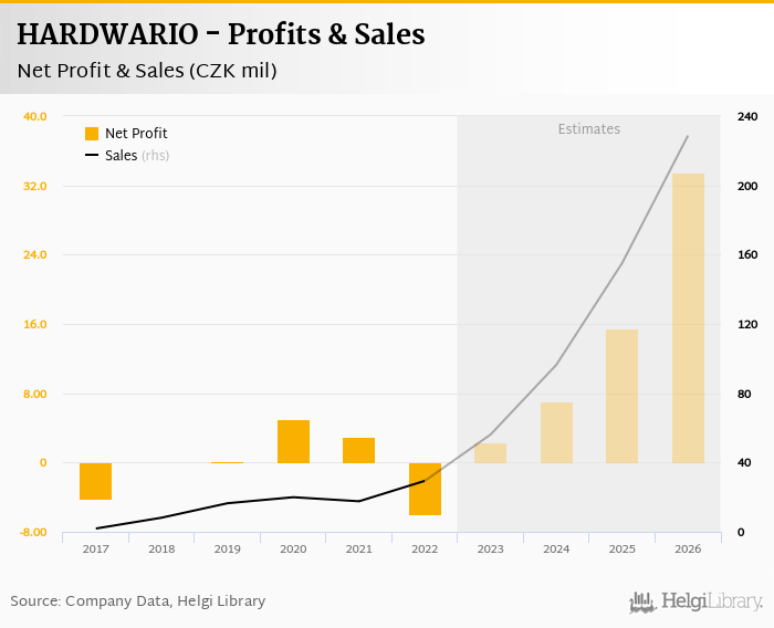 HARDWARIO made a net profit of CZK -5.90 mil in 2022, down 296% compared to the previous year. Total sales reached CZK 29.4 mil, which is up 66.9% when compared to the previous year.