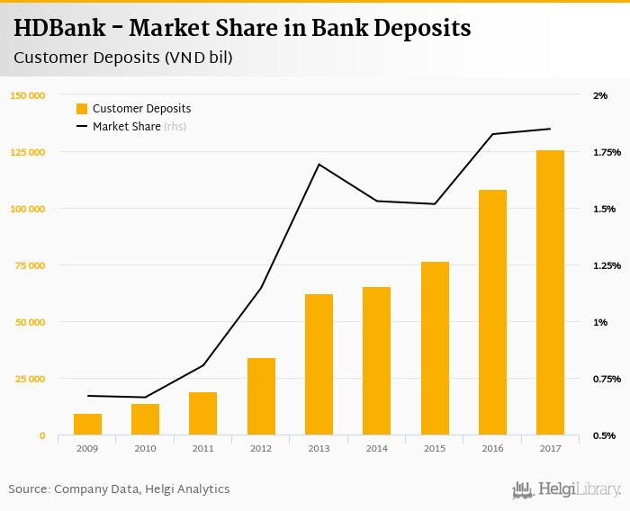 HDBank's customer deposits reached VND 125,870 bil in 2017, up 16.0% compared to the previous year.