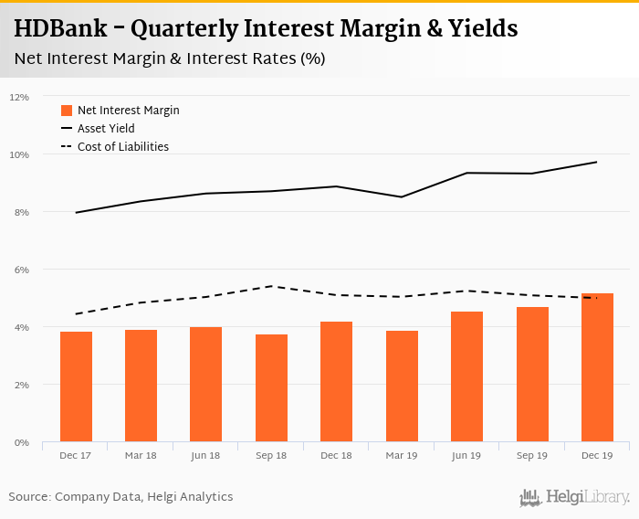 HDBank's net interest margin amounted to 5.17% in the fourth quarter of 2019, up from 4.69% when compared to the previous quarter.