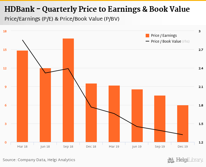 HDBank stock traded at VND 27,550 per share at the end fourth quarter of 2019 implying a market capitalization of USD 1,159 mil.