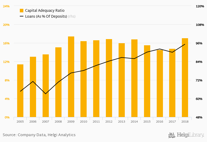 Bank's loan to deposit ratio reached 95.2% at the end of 2018, up from 89.9% when compared to the previous year. Some 10 years ago, loan to deposit ratio of the bank amounted to 70.6%.