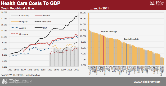 Health care expenditures accounted for 7.5% of GDP on average in the Czech Republic in the last five years. This is one of the highest figures within the EMEA, but still well below the standards seen in the western Europe. When compared to the neighbouring Austria, for example, Czechs spent as little on health care as Austrians at the beginning of 1990's in relative terms.