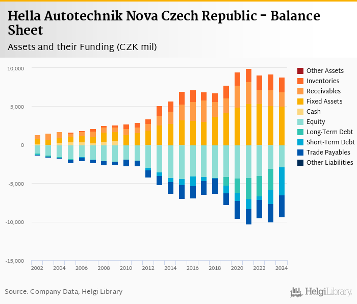 Hella Autotechnik Nova Czech Republic's total assets reached CZK 11,040 mil at the end of 2024, down 5.53% compared to the previous year.