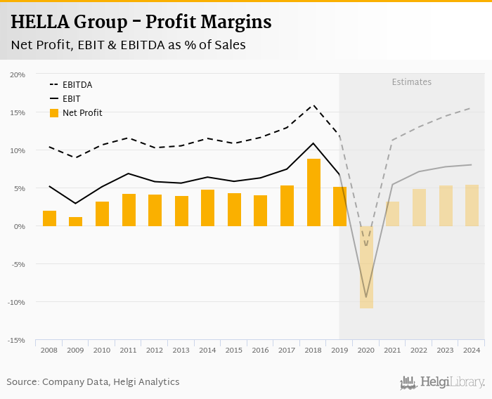 HELLA Group made a net profit of EUR 348 mil with revenues of EUR 6,753 mil in 2019, down by 45.1% and down by 5.66%, respectively, compared to the previous year.