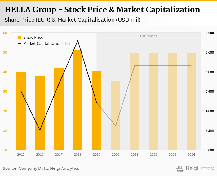 HELLA Group stock traded at EUR 40.4 per share at the end 2019 implying a market capitalization of USD 5,039 mil.