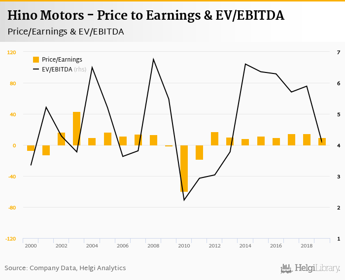 Hino Motors stock traded at JPY 909 per share at the end 2019 translating into a market capitalization of USD 4,829 mil.