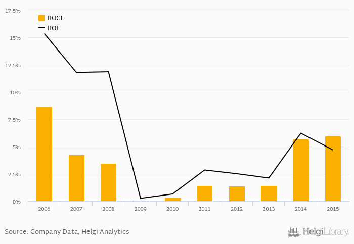 The result implies a return on equity of 4.68% and a return on invested capital of 5.96% in 2015. That is compared to an average of 3.68% and 3.19% over the last five years.