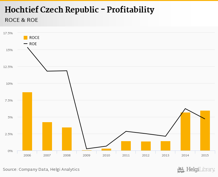 Hochtief Czech Republic made a net profit of CZK 49.5 mil in 2015, down 22.4% compared to the previous year. Historically, between 2005 and 2015, the company's net profit reached a high of CZK 126 mil in 2006 and a low of CZK 2.48 mil in 2009.