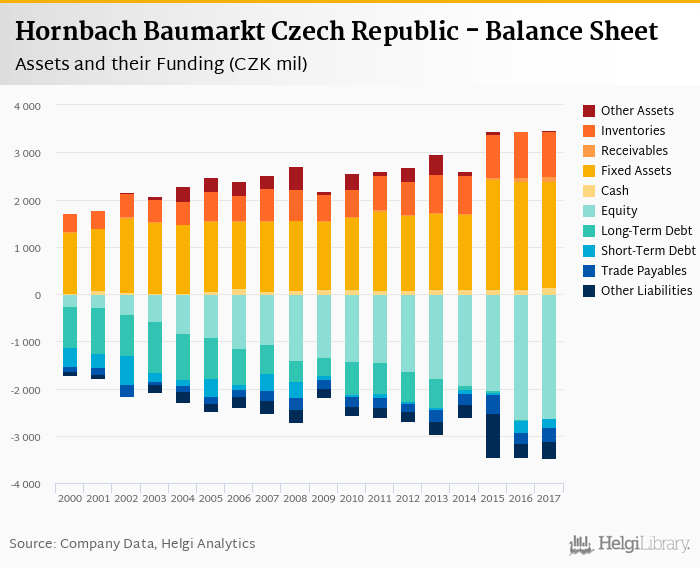 Hornbach Baumarkt Czech Republic's total assets reached CZK 3,462 mil at the end of 2017, up 0.56% compared to the previous year.