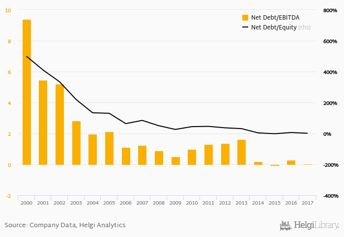 Historically, the firm’s net debt to equity reached a high of 499% in 2000 and a low of -1.65% in 2015 between 2000 and 2017. The average for the last five years was 8.13%.