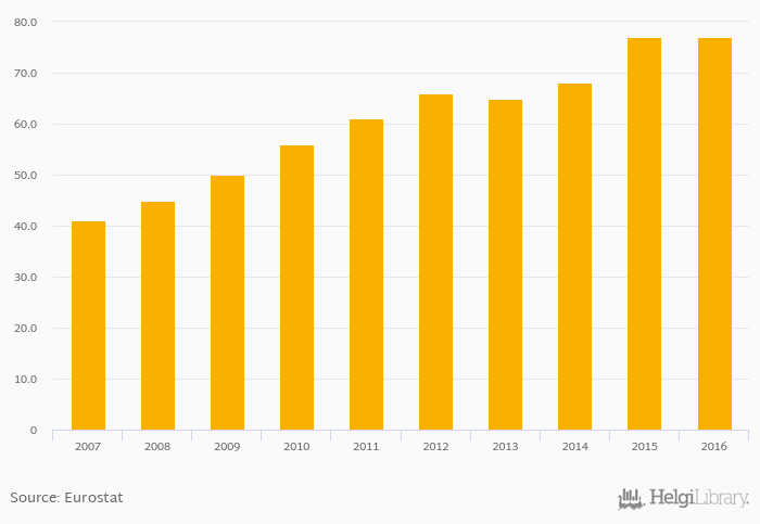 | Slovenia | % | ... | ... | ... | ... | ... | ... | ... | ... | 68.0% | 73.0% | 74.0% | 76.0% | 77.0% |